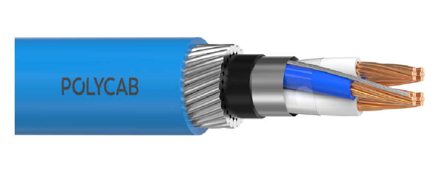 Polycab 1 Sqmm, 2P Pair, Copper Class 2/Stranded Copper, PVC Type A, Armoued – GI wire Instrumentation Cable – Blue – I-1PX2PSCNARMDFRLS